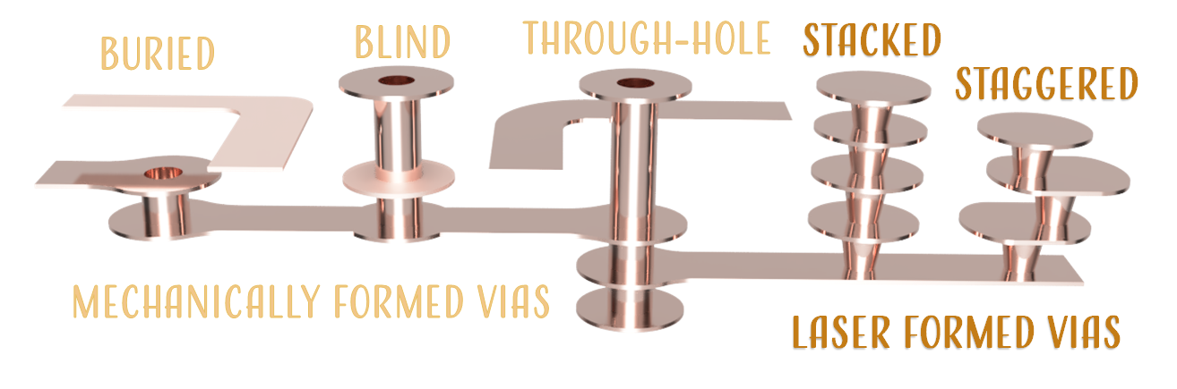 Microvia holes are created with lasers that pierce through the topmost layer of copper and the underlying dielectric material. The combined thickness of the dielectric and copper is equal to the minimum allowable via diameter.