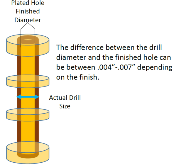 The last item for designers to consider is what drill size does the fabricator actually drill width. To answer this question it would be beneficial if the designer has two rules. One for plated vias in which finished hole size does not matter, and two component holes sizes that typically has a lead in finished plated hole. Component holes should list the finished hole size and the allowed tolerance.