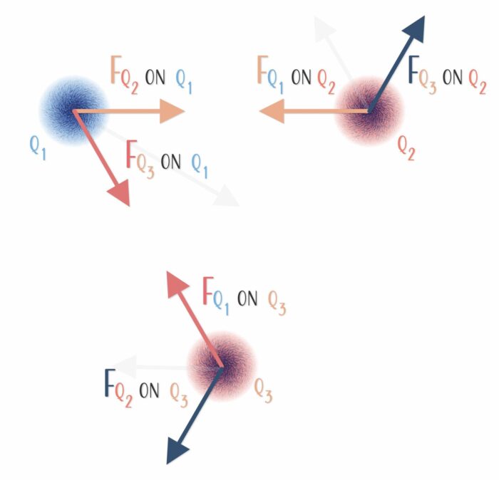 By the time you investigate three charges, you usually have to keep track of the result of forces in two dimensions.