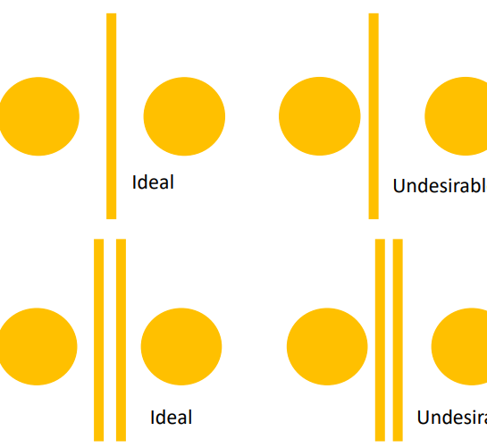 From my illustration it is self-evident that the undesirable has less space and did not maximize the available spacing. (It is interesting that IPC-2222 rev B uses the words desirable or undesirable 19 times). What I would like to share is what the impact of the undesirable usage of conductor space for PCB fabrication, and your design.