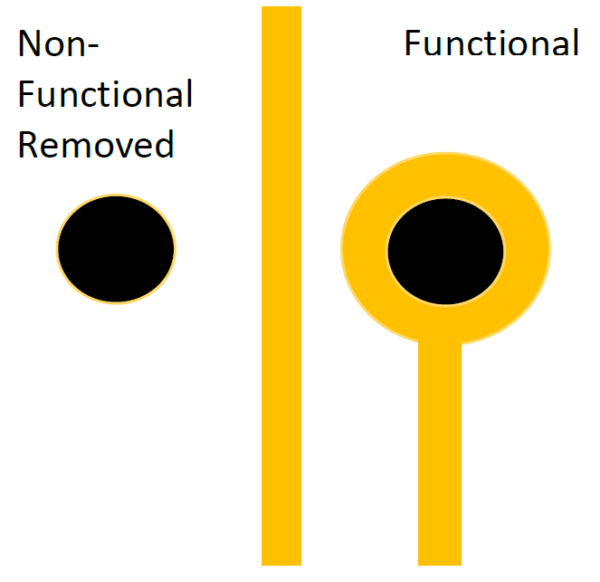 The topic of this post is not if PCB inner layer non-functional pads for plated holes should be kept or removed (that is a subject for a future post), but what rules are safe if your design has removed the nonfunctional pads.